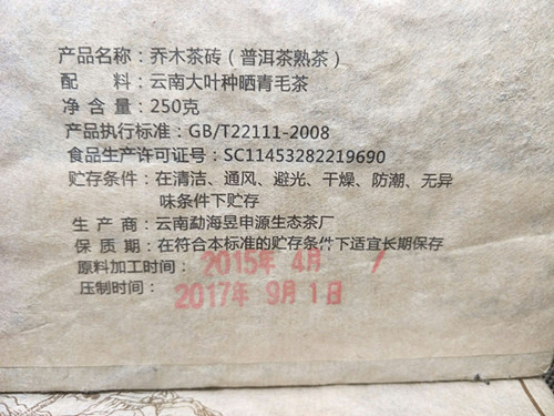 【产品特点】:15年早春陈料发酵17年压制的老树乔木熟茶砖,外形工整,松紧适度,条索完整,发酵适度,汤色明亮深红,晶莹剔透,滋味醇厚,陈香明显,口感丰富饱满,有层次感,浓稠柔滑厚重,香气纯正浓香,余味长久,滑糯醇正,纯正浓郁,淳厚回甘。自然转化得很好,值得一品。