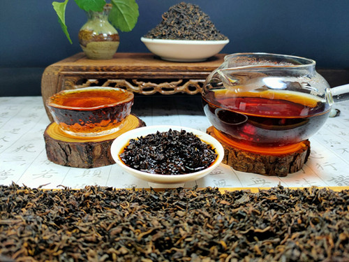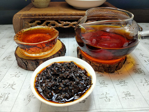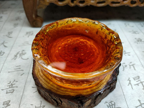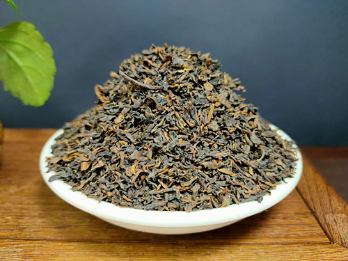 【产品简介】:选用西双版纳大叶种宫廷级晒青毛茶为原料。经传统工艺发酵,古法精制而成,散茶条索细腻,尽显金毫,比较碎的感觉,冲泡两次后茶汤通透红浓,汤汁厚实细腻,入口有浓厚的胶质感,绵密顺滑,延伸至喉部的醇厚韵味,一般浓郁的陈香混合参香味散发出来,两颊甘甜润泽,层次感丰富。是一款适合自饮品尝的熟茶。