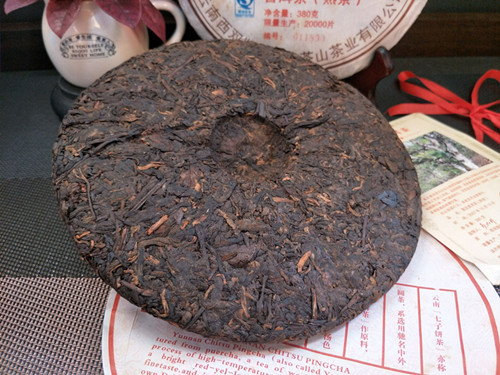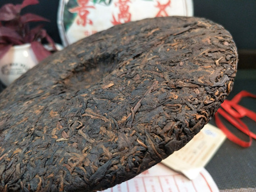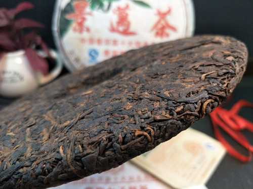 【 特 点】:精选云南六大茶山景迈茶区大叶种早春乔木晒青毛茶为原料,经传统制茶工艺加工制作而成,茶饼周正圆润,条索清晰紧结,肥硕润泽,汤色红浓明亮,香气浓郁,滋味醇厚,回甘生津,纯和香甜,干仓存放至今,现在品饮,口感好!是一款值得收藏品饮的上好熟茶品!