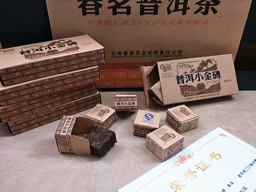 | 产品名称 : | 2011年春茗普洱茶 春明牌 普洱小金砖 50克获金奖特级小熟砖 熟茶 |