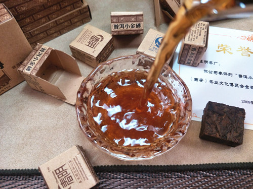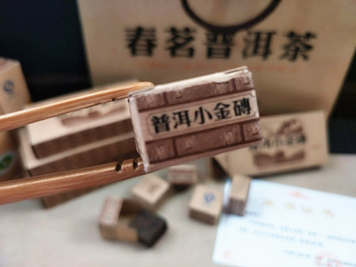 【商品介绍】本产品选用云南高海拔大叶种乔木茶为原料,经传统发酵工艺精心压制而成。成型小砖迷你小巧,条索匀净,色泽褐红,冲泡后汤色明亮,入口甘甜滑润,独特陈香气味高扬,茶味醇厚悠长,后韵十足耐人品味。特级小金砖获茶博会金奖,口味醇香耐泡,每次一粒,冲泡方便,是居家待客,馈赠亲友的上佳选择,值得品饮收藏。