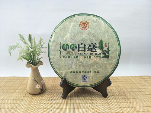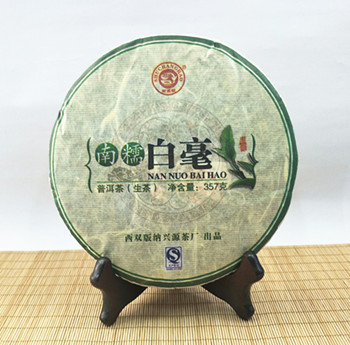 【详细介绍】此产品采用西双版纳傣族自治州境内南糯山特级白毫茶料压制,外形平滑,厚薄均匀,松紧适度,条索粗壮,汤色明亮,入口醇和,香气扬,带着南糯山茶特有的果香味,回甘快,口味清香,茶气厚实,生津持久。