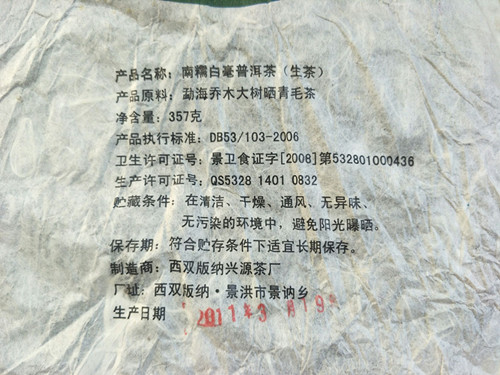 | 产品名称 : | 2011年兴源树昌号 南糯白毫357克乔木大树芽青饼云南普洱特价生茶 |