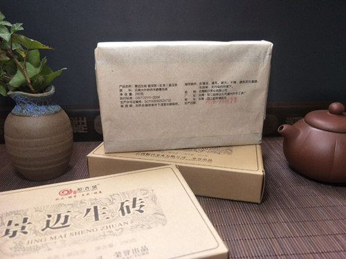 【茶品特点】本品精选云南景迈地区大叶种晒青包茶为原料,按传统工艺压制而成,砖型工整,条索紧结,叶脉肥壮,芽毫显露,冲泡后汤色透亮,香气纯正,滋味醇爽,香甜回甘,茶气深厚,韵味悠长。是品饮佳品,可即时饮用,也可长期存放收藏,待时间陈化后会越陈越香。