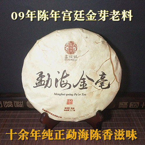 【详细描述】:该茶精选云南勐海地区09年陈年宫廷老料,精心选用全芽毫一口料压制,饼形圆润饱满,条索清晰明了,茶芽遍布,嫩度突出,松紧适中,金黄细嫩,汤色红浓,油润透亮。品饮口感醇厚甘甜,香气馥郁,喉韵甘润,陈香显著,浓滑稠重。叶底油亮有光泽,柔软有韧性。嫩度高,鲜活,再转化空间大,是地道的勐海口感,值得自品或送亲朋好友。