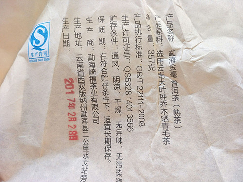 【产品名称】:2017年鑫裕祥 勐海金毫 陈年老料熟饼