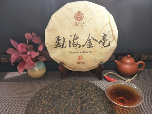 | 产品名称 : | 2017年鑫裕祥 勐海金毫 宫廷熟饼特价促销 357克陈年老料乔木熟茶 |