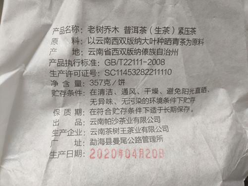 | 产品名称 : | 2020年帕沙箐源昌深山 老树乔木勐海早春357克青饼紧压茶普洱生茶 |