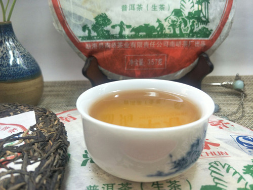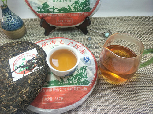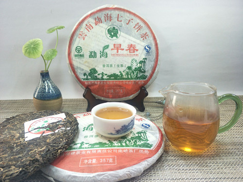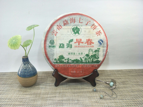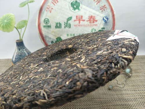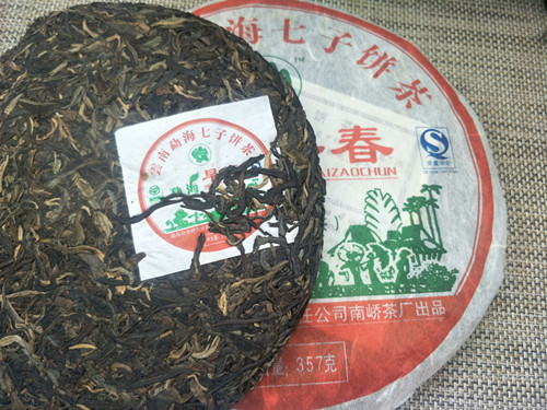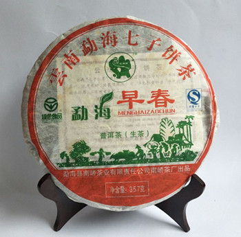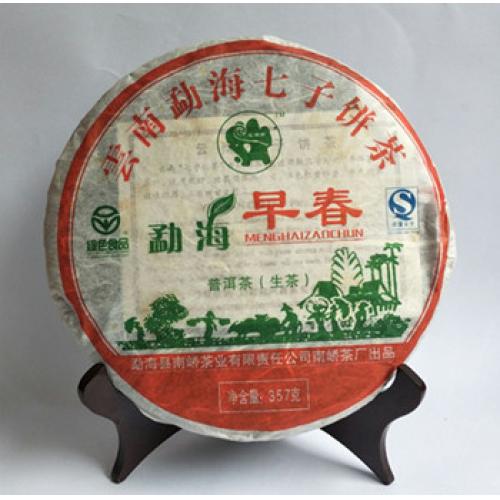 【产品简介】:南峤茶厂08年首批生茶-勐海早春青饼选用云南勐海08年早春老树乔木大叶晒青茶为原料。经严格筛选精拣,采用古老工艺和现代科技相结合精制而成。茶品具有条形肥壮厚实、紧结显毫、汤色剔透明亮、滋味浓烈霸气、生津回甘、久泡余香的特点。现已经干仓存放十多年,更体现其越陈越香醇的勐海口味。