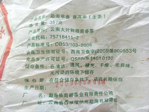 【生产商】:勐海县南峤茶业有限责任公司南峤茶厂