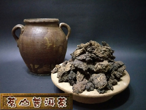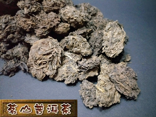 【商品介绍】茶头,也叫自然沱,用大叶种晒青毛茶发酵而成,由于嫩度高,果胶含量高,在熟茶的渥堆发酵过程中,自然卷曲或纠结成块,就形成了茶头。茶头乃普洱茶中难得茶品,而且需是用料等级高的熟茶才能有茶头产生,一吨的熟茶堆子中才能产生几十公斤茶头。