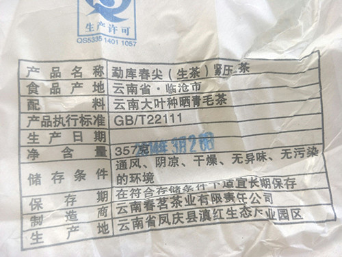 | 产品名称 : | 2014年春茗茶业 春明牌 双江 勐库春尖 357克早春乔木茶青饼 生茶 |