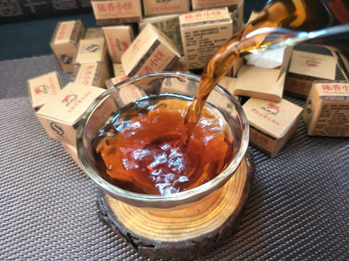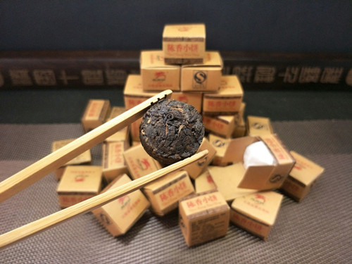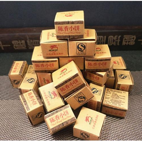 【产品特点】:老包装勐海陈香小饼,选用勐海早春乔木晒青毛茶,经传统工艺配方压制而成,迷你小饼茶叶条索清晰,冲泡后汤色红浓明亮,滋味陈香浓郁,醇厚稠滑,韵味悠长。经久耐泡。陈香小饼每盒约6克,独立包装,干净卫生,品饮方便,每次一颗,沸水冲泡即可!可反复冲泡多次,越泡越好喝,是一款很好喝的大众熟茶,携带方便,冲泡简捷,雅俗共饮。