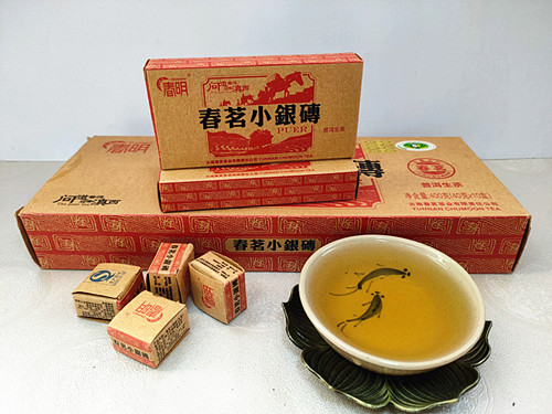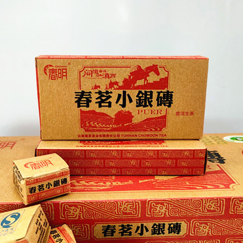 【产品特点】春明普洱茶原料采用云南滇西高海拔古树茶园的优质大叶种茶叶,经多道工艺蒸压压制而成,拼配以细嫩和中壮茶青相结合,成茶迷你小砖端正小巧,条索匀净紧结,白芽显露,冲泡后汤色明亮,香气纯正,滋味爽滑,馥郁醇厚,回味甘甜,叶底嫩匀,持久耐泡。小银砖一次一粒方便冲泡,是居家待客品饮的一款好茶。