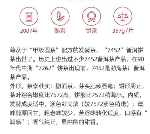 陈化大益7452熟茶702批勐海茶厂普洱茶2007年七子饼茶357克