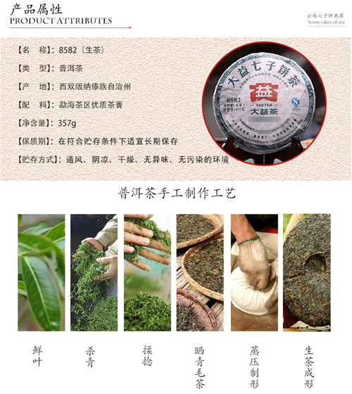 大益普洱茶8582生茶勐海茶厂普洱茶357g饼茶202批次
