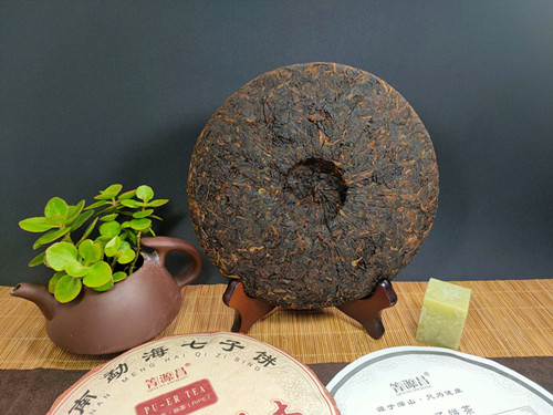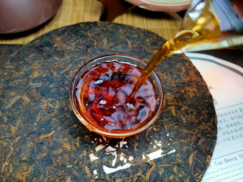 【产品特点】选用勐海茶区大叶种晒青毛茶为原料,遵循传统古法压制而成,外包装古色古香,饼型周正,松紧适中,条索粗壮,金毫洒面,发酵适度,内含物质丰富,汤色红浓明亮,晶莹剔透,香气馥馨,纯正浓郁,口感浓稠柔滑厚重,滋味醇厚回甘,香甜顺滑,耐泡度高。叶底肥厚饱满,富有弹性。品质优良,越陈越香。昆明纯干仓存放,浓浓的陈香口味,值得品饮收藏。
