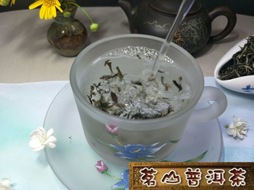 【特点】:此绿茶采用早春嫩芽为茶坯,与含苞未放的茉莉鲜花混合窨制而成,花香、茶香交融,并保留干花瓣在茶中。冲泡后茶汤黄亮清澈,香气清悠品味高雅,有浓郁的茉莉花香气,颜色是清新透亮的绿,上面飘浮着白色的花瓣,茶香花香淡淡的,却经久停留在唇齿之间。外形紧细挺秀,白毫显露,香气持久,回味甘醇。泡饮时应选用盖碗泡饮,品此茶令人赏心悦目。