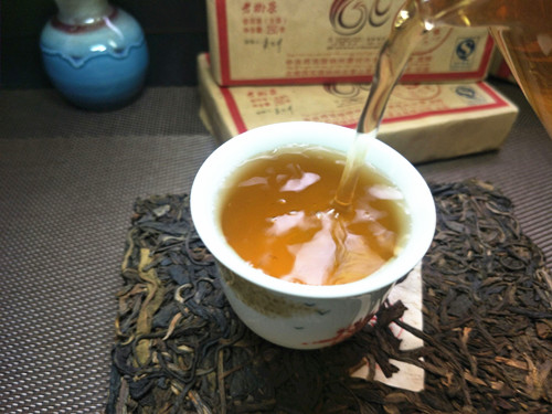【特点】本片普洱茶是西双版纳傣族自治州建州六十周年纪念茶,由中共西双版纳州委对外宣传办公室监制、云南西双版纳州古茶山茶业有限公司荣誉出品。每片普洱茶从原料开始到成品制作均有茶叶专家李正行先生亲自把关。特选十三个山头老树茶原料,按普洱茶古老工艺精心制作而成。茶砖芽叶肥大,条索清晰油亮,开汤后汤色黄亮光泽,口感回甘生津,滋味厚重,茶气浓烈,汤香清扬。回甘快,口感层次多。高香且耐泡,叶底完整,有韧性。