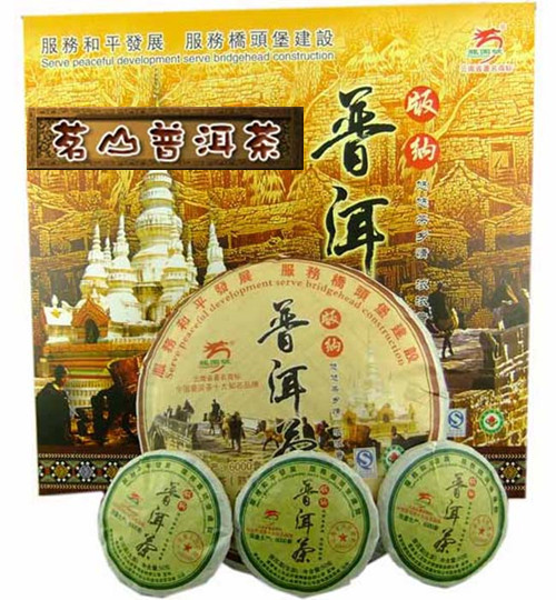 【详细说明】:本礼品茶为云南省人民政府台办礼茶版纳普洱茶礼品茶。生熟套装礼盒,内装一熟饼三生饼,(50克生茶*3饼;400克熟茶1饼),有生有熟,相得益彰。且限量生产仅6000套。原料选用西双版纳六大古茶山的早春茶(茶树龄均在百年以上),按传统工艺精制而成,具有较高收藏价值!