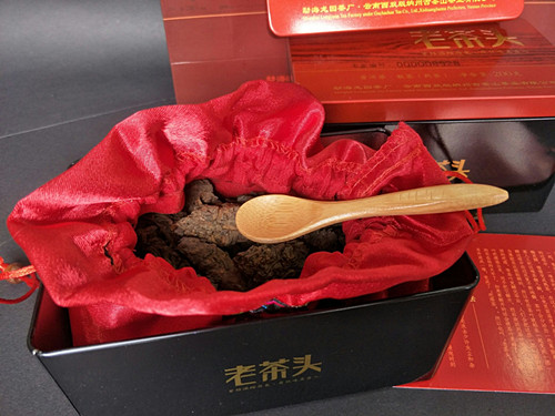 云南普洱茶正品干仓 2017年龙园号 老茶头 200克铁盒装 礼品熟茶