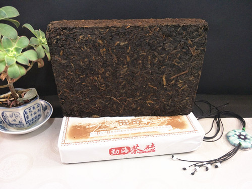 【茶品介绍】该茶砖采用勐海地区大叶种晒青毛茶为原料,经适度发酵后陈放压制而成,适度发酵,砖型工整,条索壮硕,叶片粗大,里外都是一口料,冲泡后汤色红亮,香气扑鼻,口味香甜,陈香浓郁,顺滑醇厚,滋味醇和,回甘明显等特点。尽显大叶种茶叶肥壮的天然风格,多年陈放后显露特有的陈香味,综合品质高,值得收藏品饮,越陈越香。