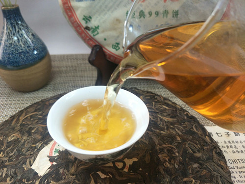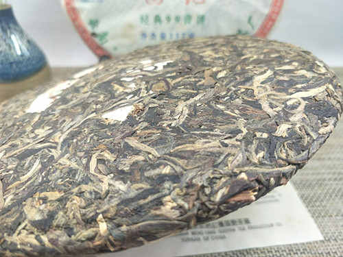 【产品特点】在2007年原料紧缺的情况下,勐养国艳茶厂推出了大家盼望,等待已久的经典系列精品,国艳经典99青饼选用云南勐海早春生态乔木大叶晒青茶为原料。经严格筛选精拣,采用传统工艺精制而成。茶饼规整,条形清晰,肥壮厚实,紧结显毫,冲泡后汤色明亮透黄,茶香浓郁,口感顺滑,生津回甘,韵味十足,久泡余香的特点。现品或继续久藏都为上佳选择。2007年中国(上海)茶业博览会金奖,是一款品饮和收藏价值都很高的特色普洱茶品!