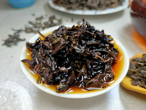 【产品特点】特级老普洱熟散茶选用云南西双版纳勐海古树茶区乔木晒青毛茶原料,在勐海渥堆发酵后,按传统工艺精致而成。特级茶料条索匀净,金毫显露,汤色深红透亮,滋味醇厚,口感顺滑,香气纯正,陈年老韵突显,属典型的勐海口味,茶底油润有弹性。地道老树茶,树龄深厚,愈久弥香,带来普洱岁月真味。一款日常品饮的好熟普。
