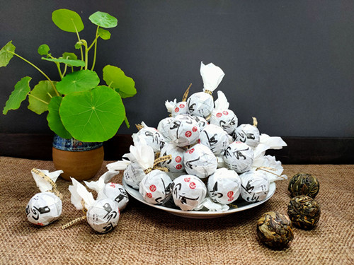 【商品介绍】此款易武古树小龙珠选料为云南易武古茶山纯正古茶原料,纯手工精心制做而成。条索紧结,每沱8克,小巧美观,茶香高扬,茶汤透亮,醇香甘冽,入口饱满,甜醇蜜香滋味,柔滑细腻,茶气强劲而内敛,山韵绵延悠长,沁入心脾。叶底肥厚柔韧,鲜活有弹性。是一款方便日常品饮及收藏的好生茶。